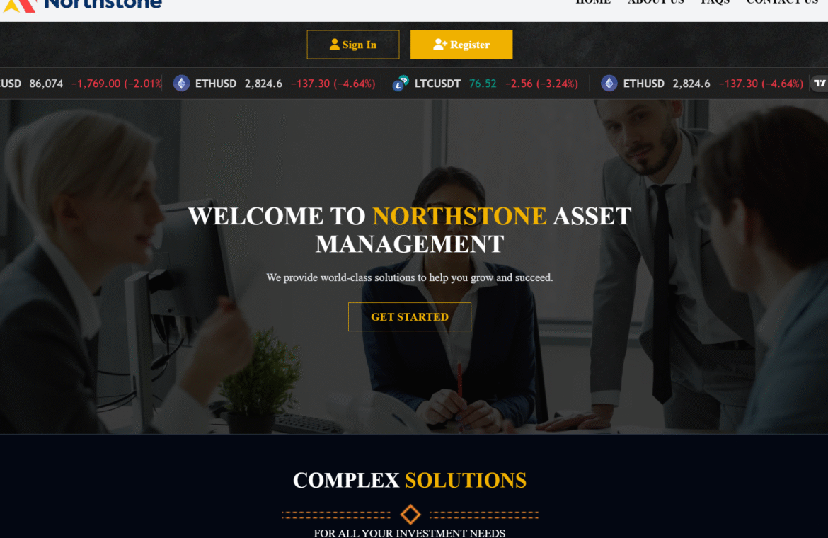 Northstone Asset Management — инвестиционный проект, предлагающий частным и корпоративным клиентам пассивный доход за счёт операций с криптовалютами, управления активами, а также инвестиций в недвижимость и другие финансовые инструменты. Компания указывает адрес в Нью-Йорке (США) и заявляет о предоставлении «мирового уровня инвестиционных решений» для инвесторов с разным уровнем капитала.