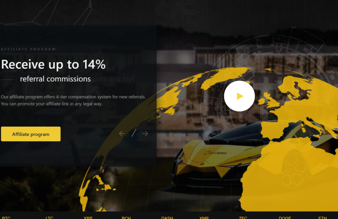 [Image showing a high-yield investment program (HYIP) structure: deposit cycles, referral levels, and promised returns]