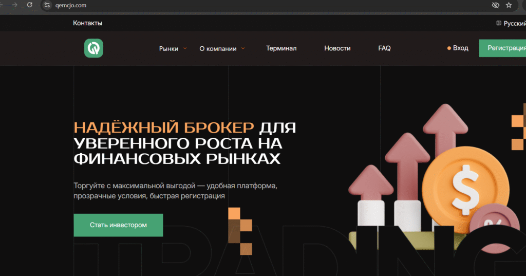Платформа Qemcjo qemcjo.com позиционирует себя как современный мультиактивный брокер, предлагающий торговлю акциями, валютами и криптовалютами. Сайт заявляет о ежедневном обороте в $4,7 млрд и обслуживании более 126 тысяч активных трейдеров. Однако детальный аудит юридической базы и операционных показателей выявляет значительные несоответствия, характерные для площадок с высоким уровнем риска. В данном материале мы разберем юридический статус Qemcjo и оценим безопасность размещения капитала на этом ресурсе.