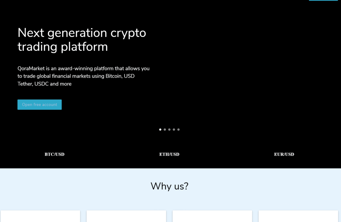 QoraMarket предлагает собственный веб-интерфейс + мобильное приложение. Активы: криптовалюты (BTC, ETH и альткоины), основные форекс-пары, популярные индексы, золото, нефть. Пополнение и вывод — преимущественно в USDT, USDC, BTC. Есть модуль копи-трейдинга (аналог Covesting), где можно подписаться на стратегии других участников. Заявлен доход до 14% на крипто-холдинге (механизм не детализирован). Образовательный раздел — несколько гайдов по форексу и крипте, без глубоких материалов.