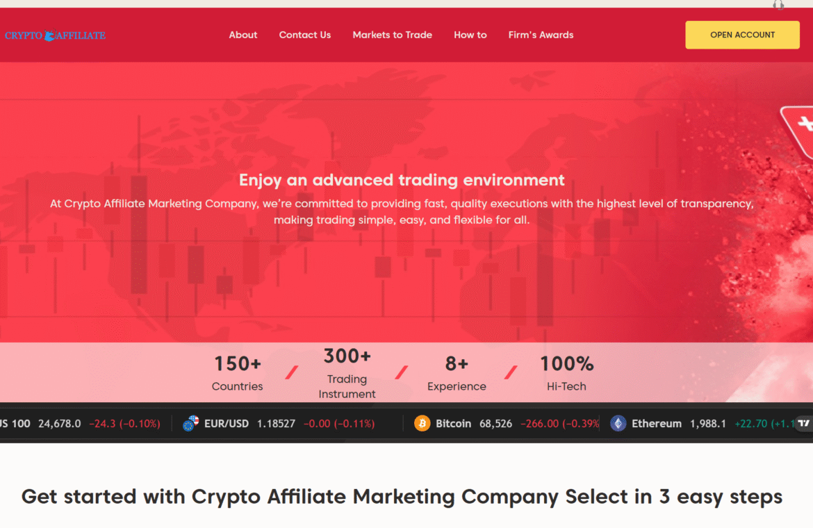 Cryptoaffiliatemarket.com позиционирует себя как глобального CFD-брокера с 15+ лет опыта, обслуживающего 60,000+ клиентов в 150+ странах. Ключевые заявления: