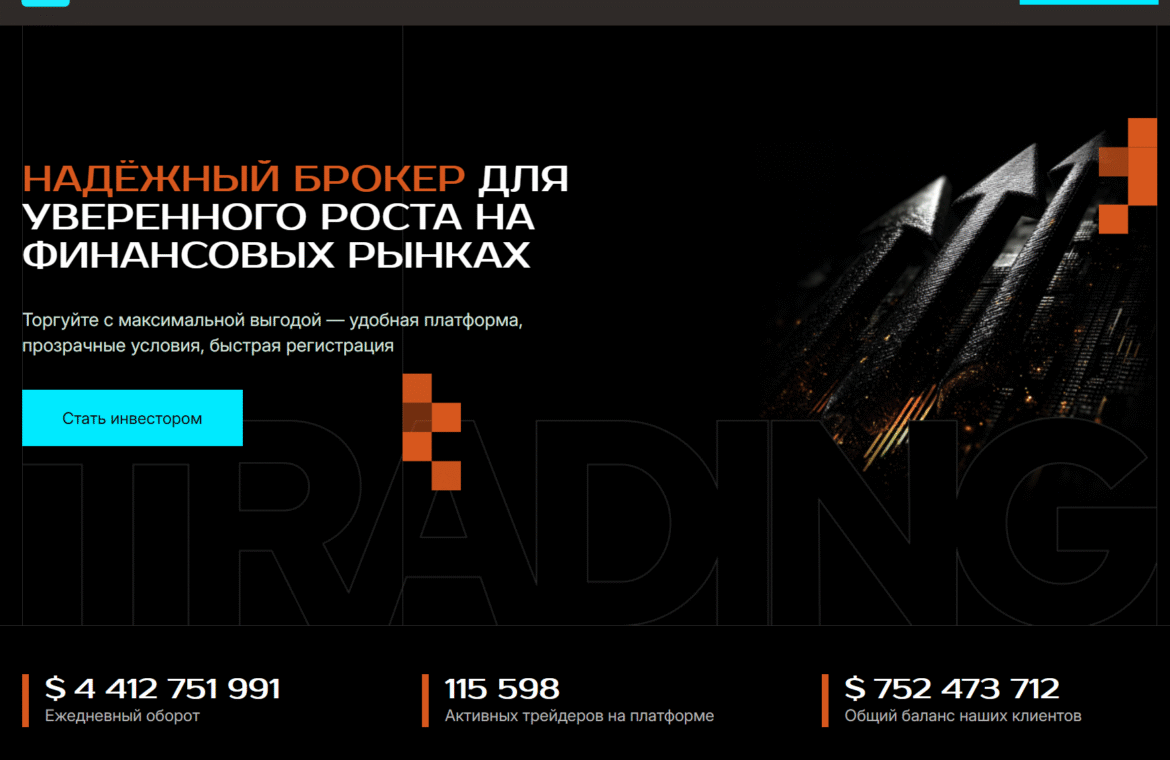 Сам сайт вызывает вопросы уже при первом внимательном прочтении. Блоки «Почему трейдеры выбирают именно нас» и шаги регистрации повторяются по несколько раз на одной странице — практически слово в слово. Это не случайная ошибка дизайна, а признак либо спешки при создании, либо использования шаблонных конструкций. Заявленная награда «Best Broker of the Year» от Trades Union тоже требует отдельной проверки: в официальных итогах премии 2025 года (опубликованных на tradersunion.com) победителем в этой номинации назван совсем другой брокер. Такие расхождения заставляют ещё внимательнее относиться ко всем остальным заявлениям платформы.